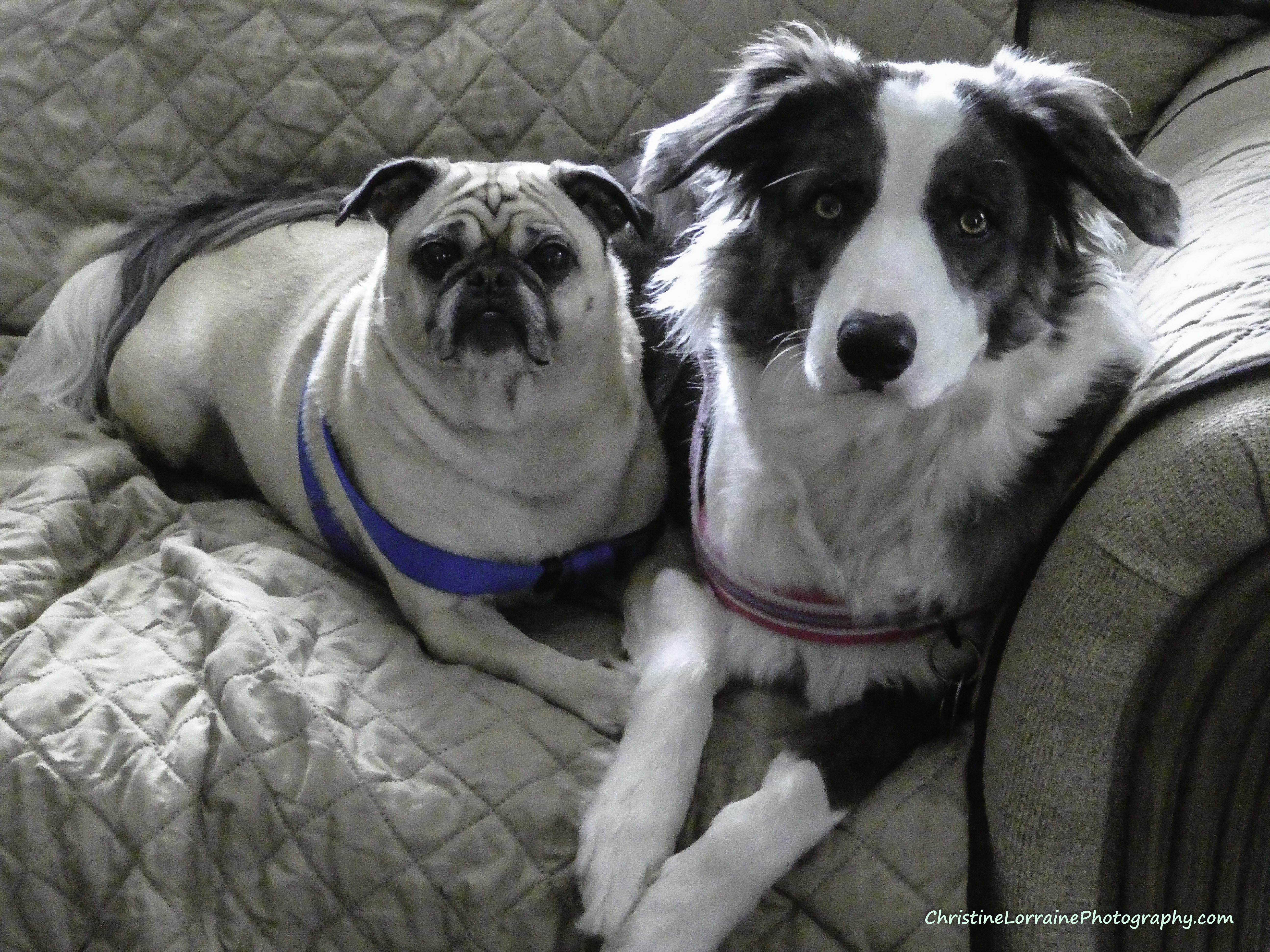 According to the blue merle border collie Zoey, “I can’t stand it when Mosie starts barking orders at me. She needs to chill out and take a nap so I can focus on getting more treats than her while she’s asleep.”