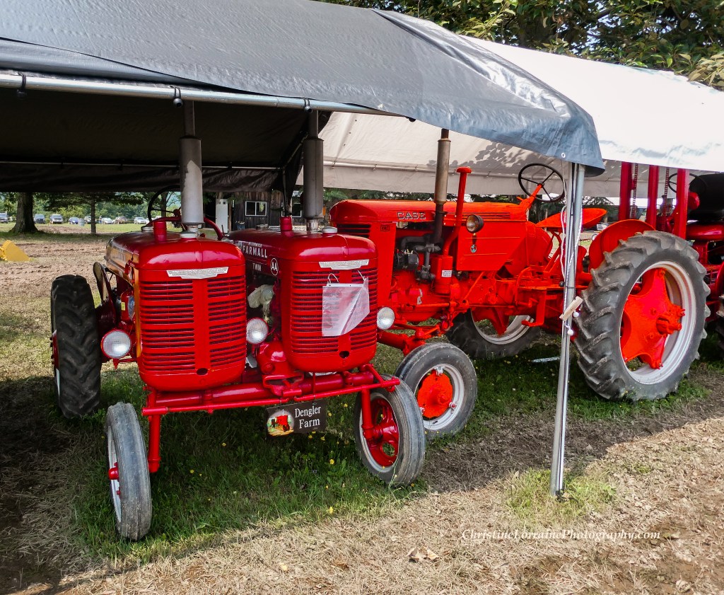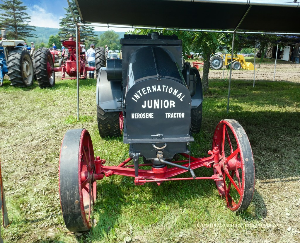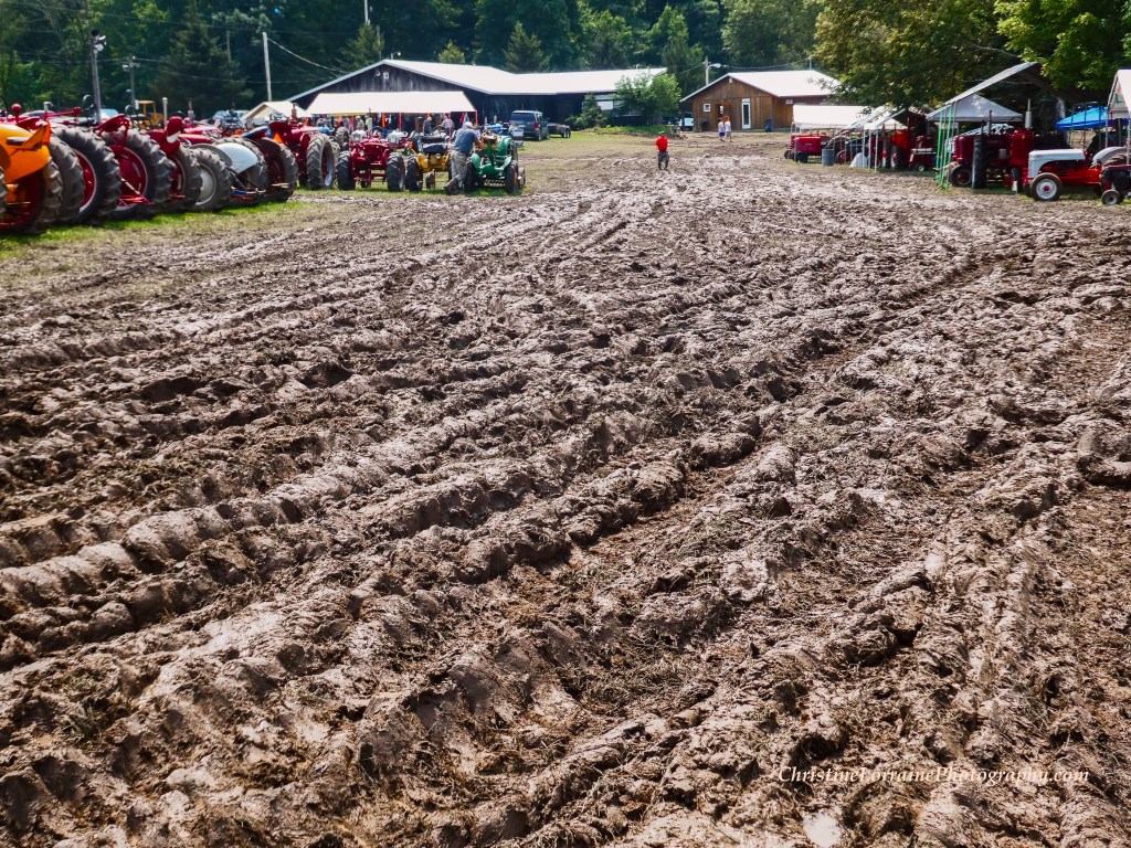 Everybody’s lined up and ready to go!Eye-catching fire-engine red, literallyColorful collection of engines and other assorted interesting stuffThe show itself was great, the mudfest was just an added bonus. Tractors of all colors, ages and styles were on display and in use.The announcer did a fine job of keeping everyone informedThe food was amazingly delicious! There’s something about traipsing around in the mud that embellishes a good lunch eaten at a picnic table.What a wonderful thing to offer!What a find! Double your pleasure, double your tractor with pizzazzA personal favorite, this cute little building is filled with cool antiques and artifacts of which you can catch a quick glimpse in the video posted below the photos.A row of powerful machinesFord tractors and New York engines were featured at this year’s show.Some of these grinders date back to the 1800s.This interesting piece has a comfortable looking seat as well as everything else.The weather cleared up by Sunday the 18th, which is the day we took these photos and video.