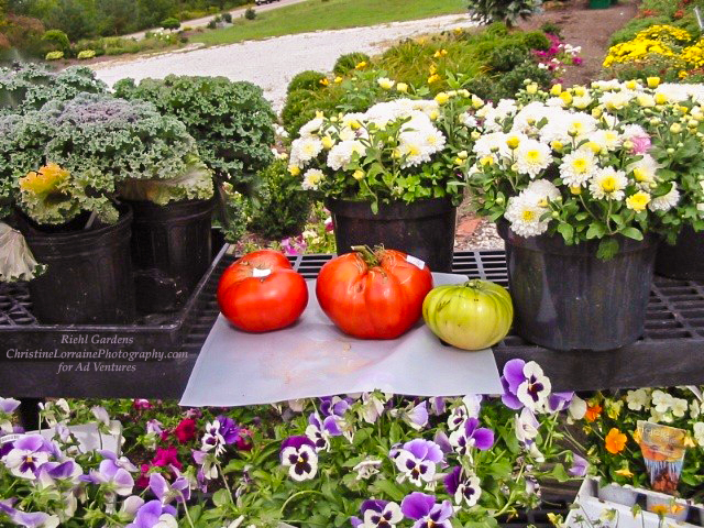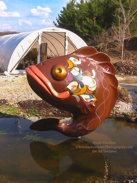 Sign Artwork by Greg FelixThe grounds were amazing, with colorful foliage thriving everywhere.A tomato contest! Winner received $100.Plants and trees were locally acclimated, which is not always the case when buying live vegetation.Riehl Gardens even had its own fish as part of Erie, PA’s “Go Fish!” campaign. This one was named “La Poisson” and was painted by Chip’s daughter, Heather.Lots of fun stuff inside of this rustic store……A treasure trove of imaginative decorations and flower pots