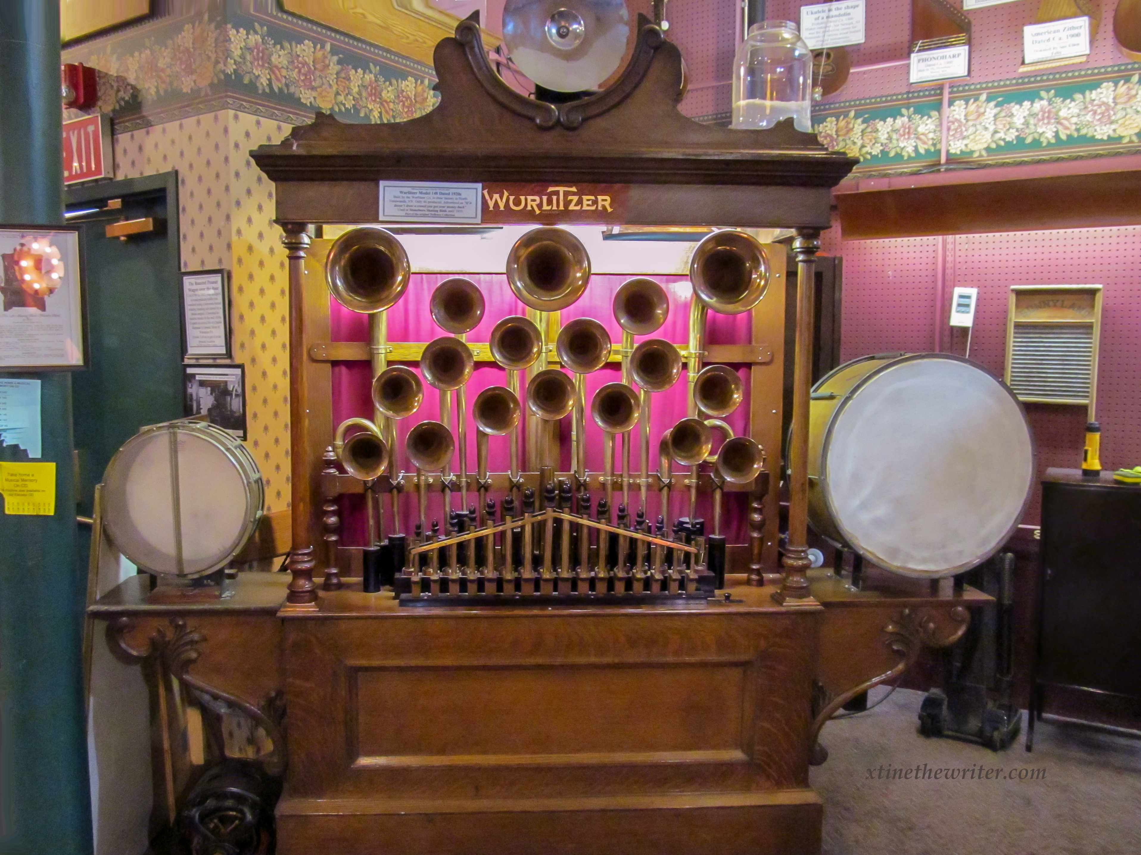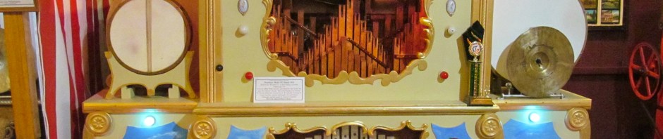 One of the larger, more memorable instruments at DeBence is the Wurlitzer Model 153, a mechanized one-man band of sorts. It is pretty easy to single out due to its colorful uniqueness.