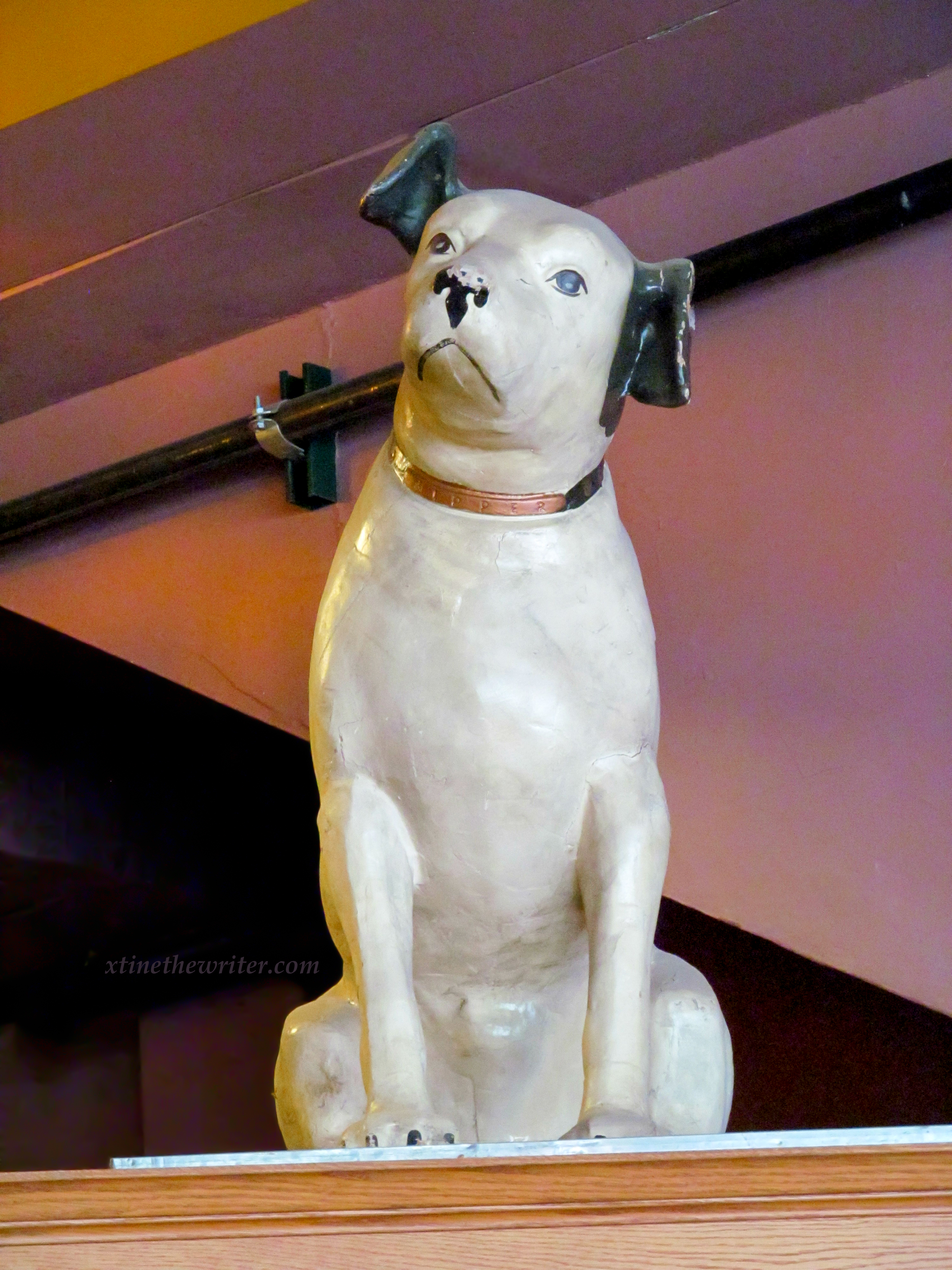 The tag in front reads, “Wurlitzer Model 153 Dated 1919” on this duplex orchestral band organ. It was constructed in North Tonawanda, NY by the Rudolph Wurlitzer Company. This dandy specimen of musical history is an organ with 54 keys that play 46 notes, accompanied by a cymbal and two drums. There are 164 organ pipes because some of the keys are designated to more than one pipe.