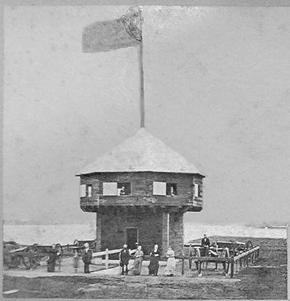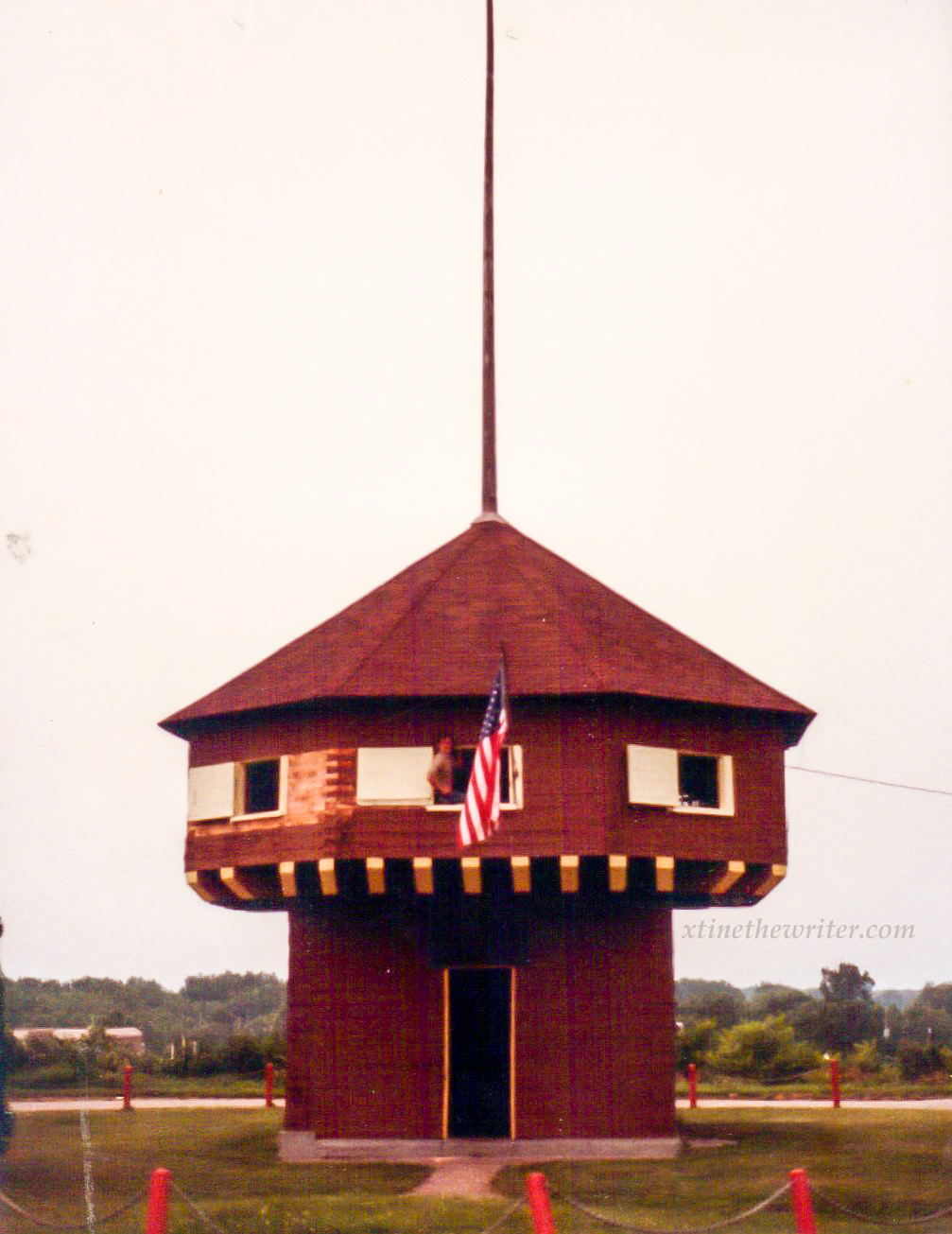 This is what the Wayne Blockhouse looked like in 1880 when it was constructed and dedicated in honor of General Anthony Wayne, who died near this site in 1796 from gout. The bay shoreline nearly reached the blockhouse at that point.This is what the Wayne Blockhouse looked like in 1985. The bayfront shoreline is much further north than it was in 1880. A building is visible in the lower left of the picture.Author Christine Lorraine Morgan smiles because she is inside of the Wayne Blockhouse in 1985 and she’s thrilled about that. Photo by Roger Prehoda