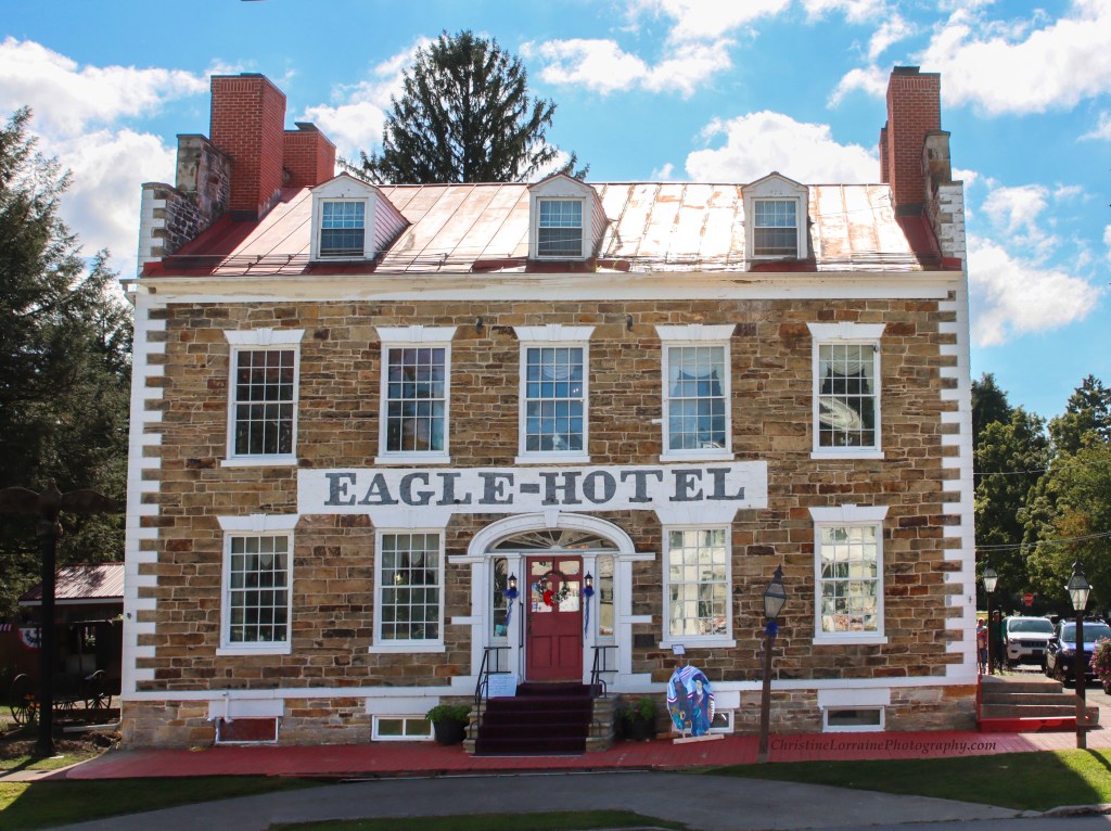 On the south side of Waterford’s Eagle-Hotel stands a life-sized commemoration to the nation’s first President, George Washington, posed in a manner to represent the fulfillment of his first public mission.