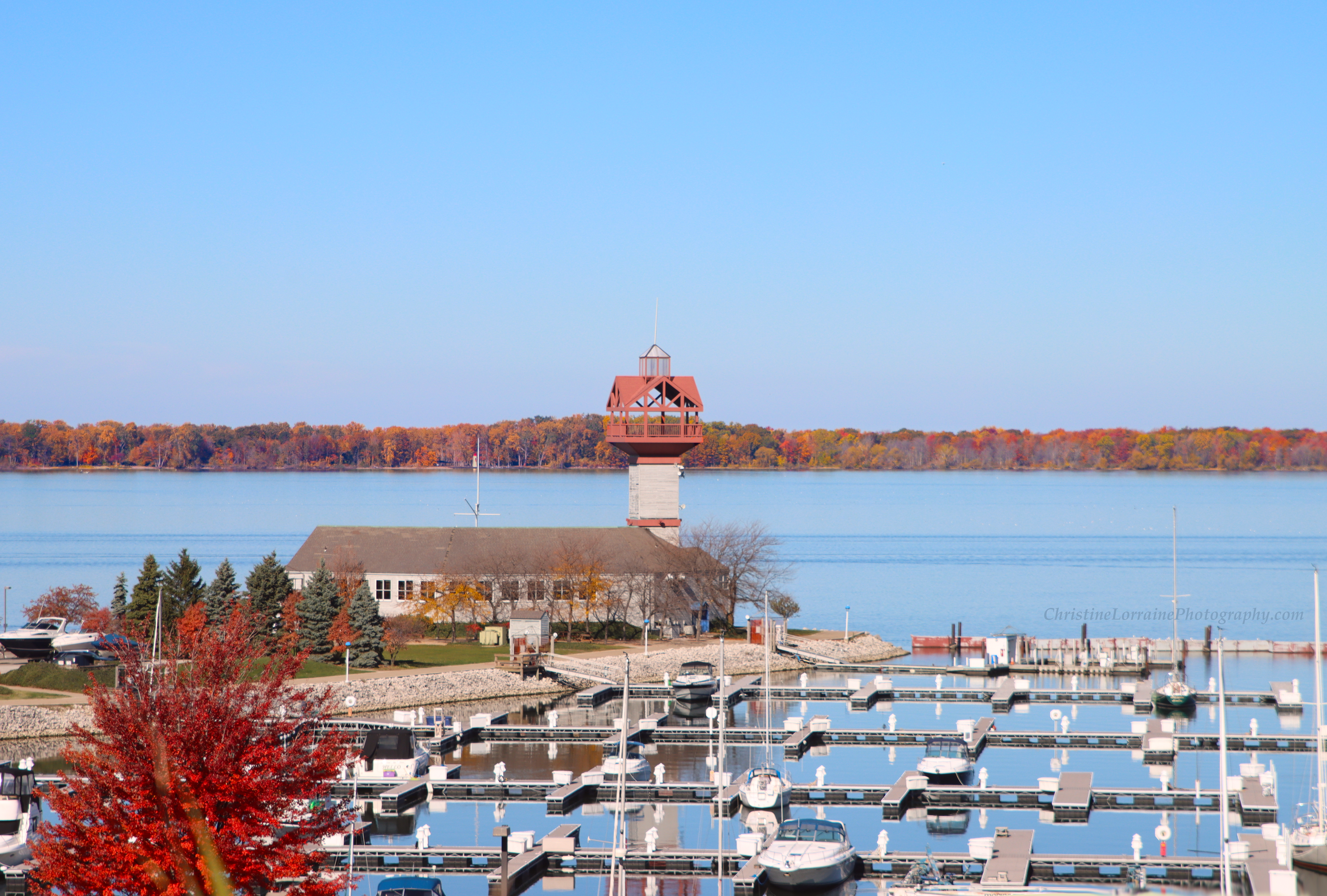 Here is the present-day view looking north from the foot of Cascade Street. The colorful autumn trees of Presque Isle State Park are visible across the bay.