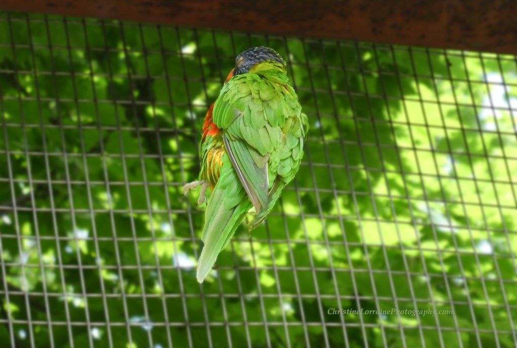 This green bird might be a parrot – the spectrum of colors in the bird world is amazing! Can you imagine a green dog or cat? Or for that matter, a dog or cat that can talk like a bird can?