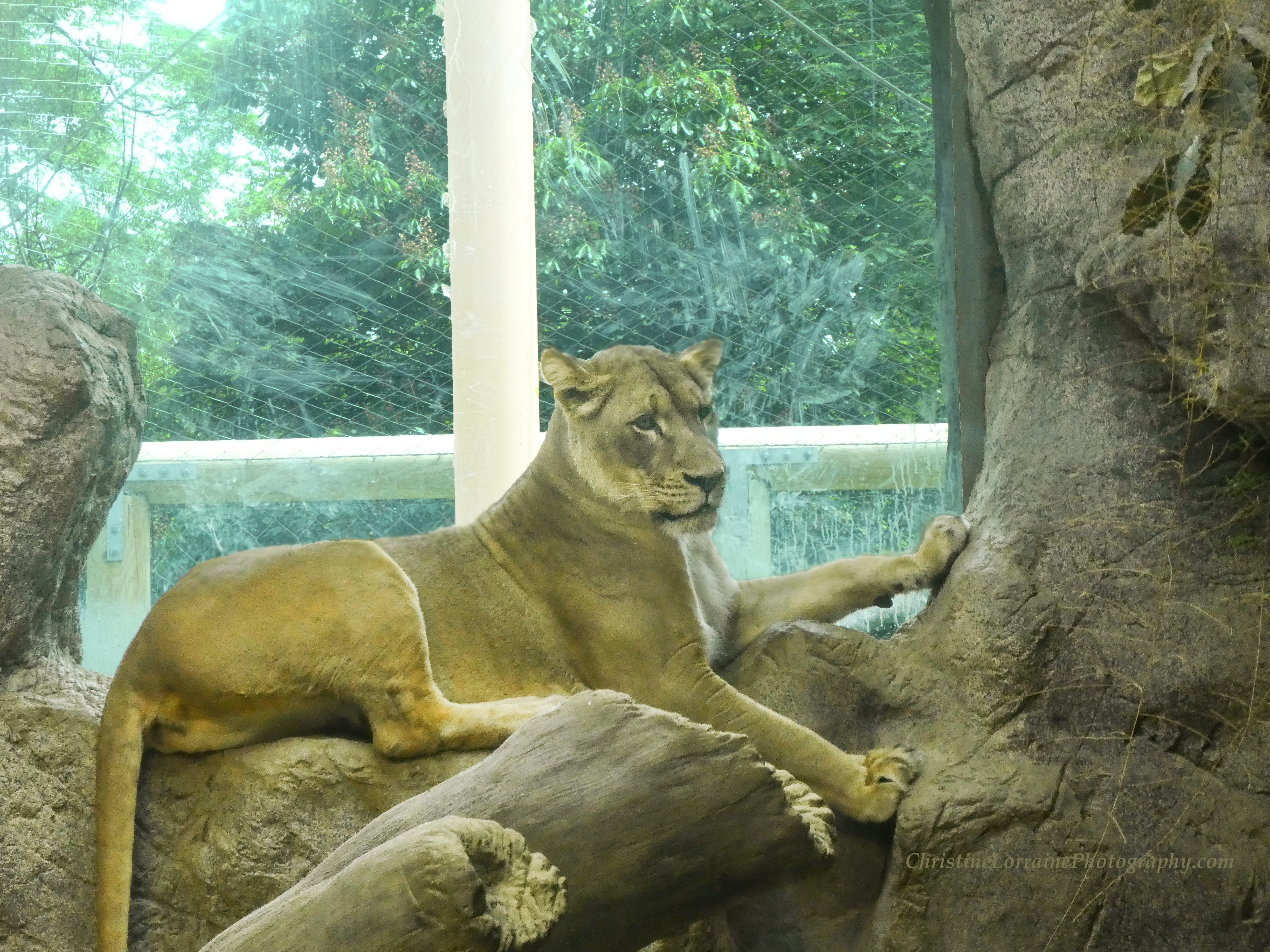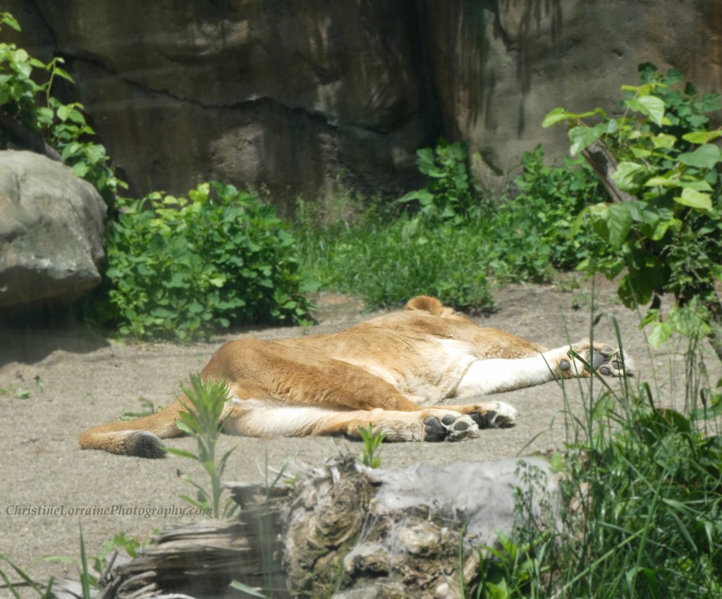 This beautiful lioness, Nala, wears a regal expression while she relaxes at the Erie Zoo in 2019. Unfortunately, she passed away in 2022 at age 24. In the photo below, Nala snoozes in the summer sunlight.