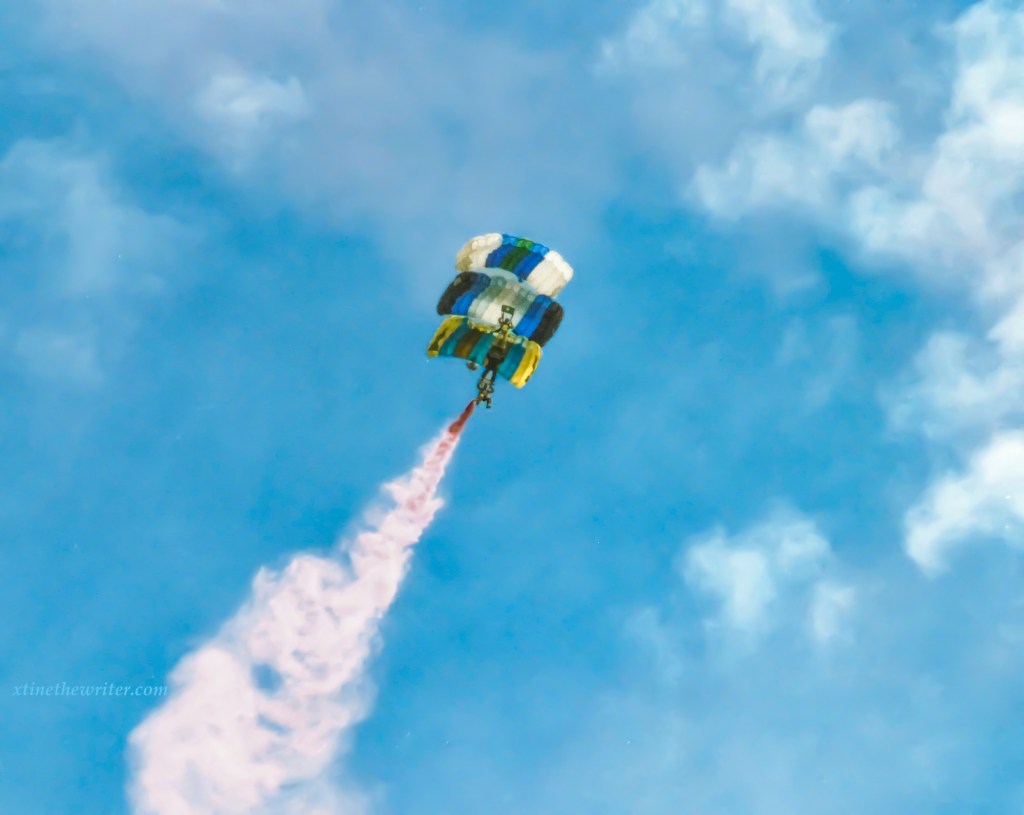 It was a brilliant day, with sunshine and a few fluffy white clouds, when thousands turned out to enjoy the show. Wing walkers, stunt pilots, parachute jumpers and dazzling ground displays were all part of the excitement. Parents sat with children on the ground to watch the show in the air, others brought lawn chairs.
