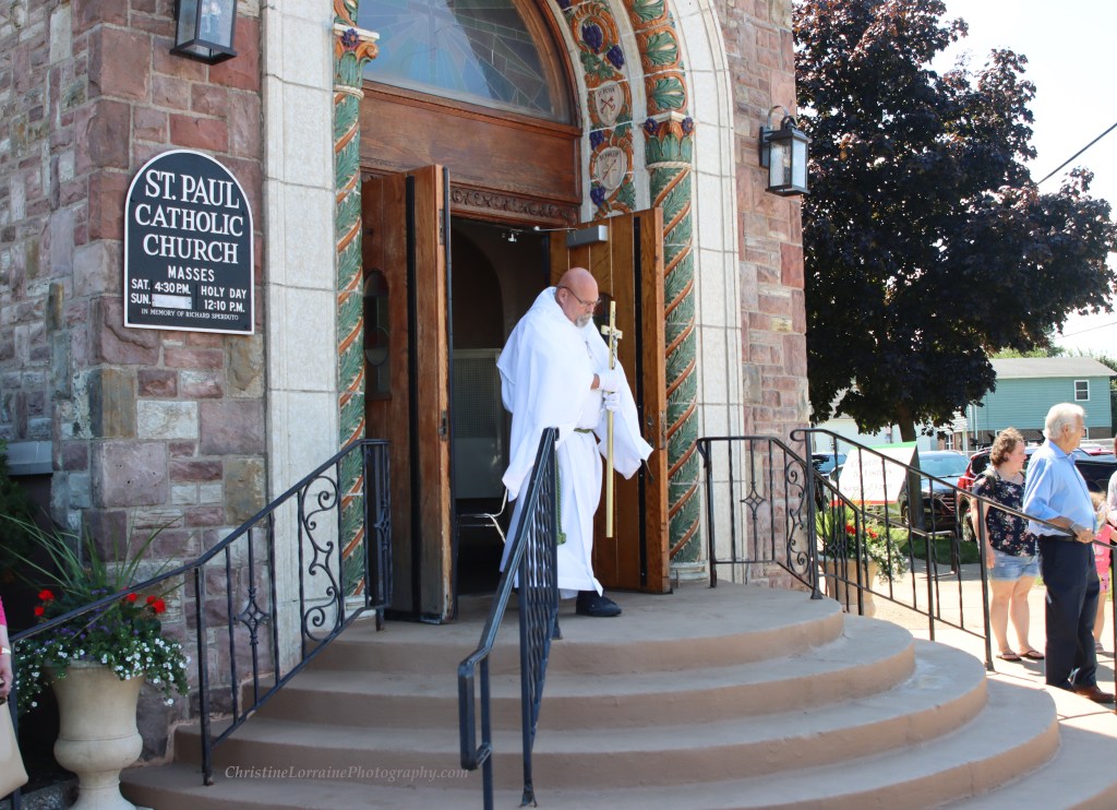 The corner of 16th and Walnut was blessed on August 19,1928, “amid a huge gathering of parishioners and friends…Due to the economic conditions and the scarcity of the dollar, the exterior shell of the new church was finished with stones from the discarded curbing of the Erie streets,” according to https://stpaulrcerie.org/History.html
