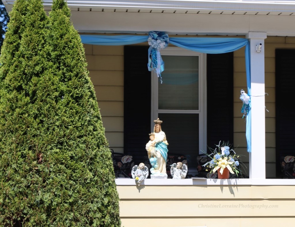 The beautiful image of the Blessed Virgin Mary is gingerly lifted through the church’s main entrance.