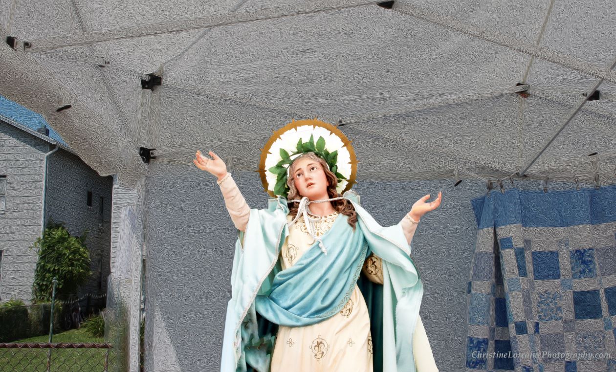 This beautiful image of the Blessed Virgin was situated in the main tent.
