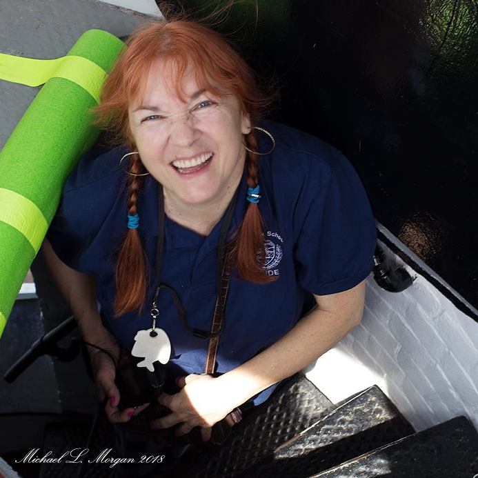 Author Christine Lorraine Morgan, aka xtinethewriter, finally reaches the top of the Presque Isle lighthouse. (this is before she conked her head while climbing into the lantern room).