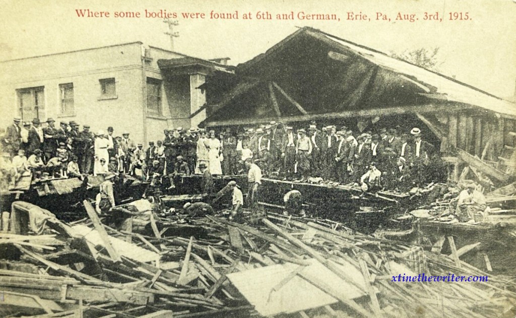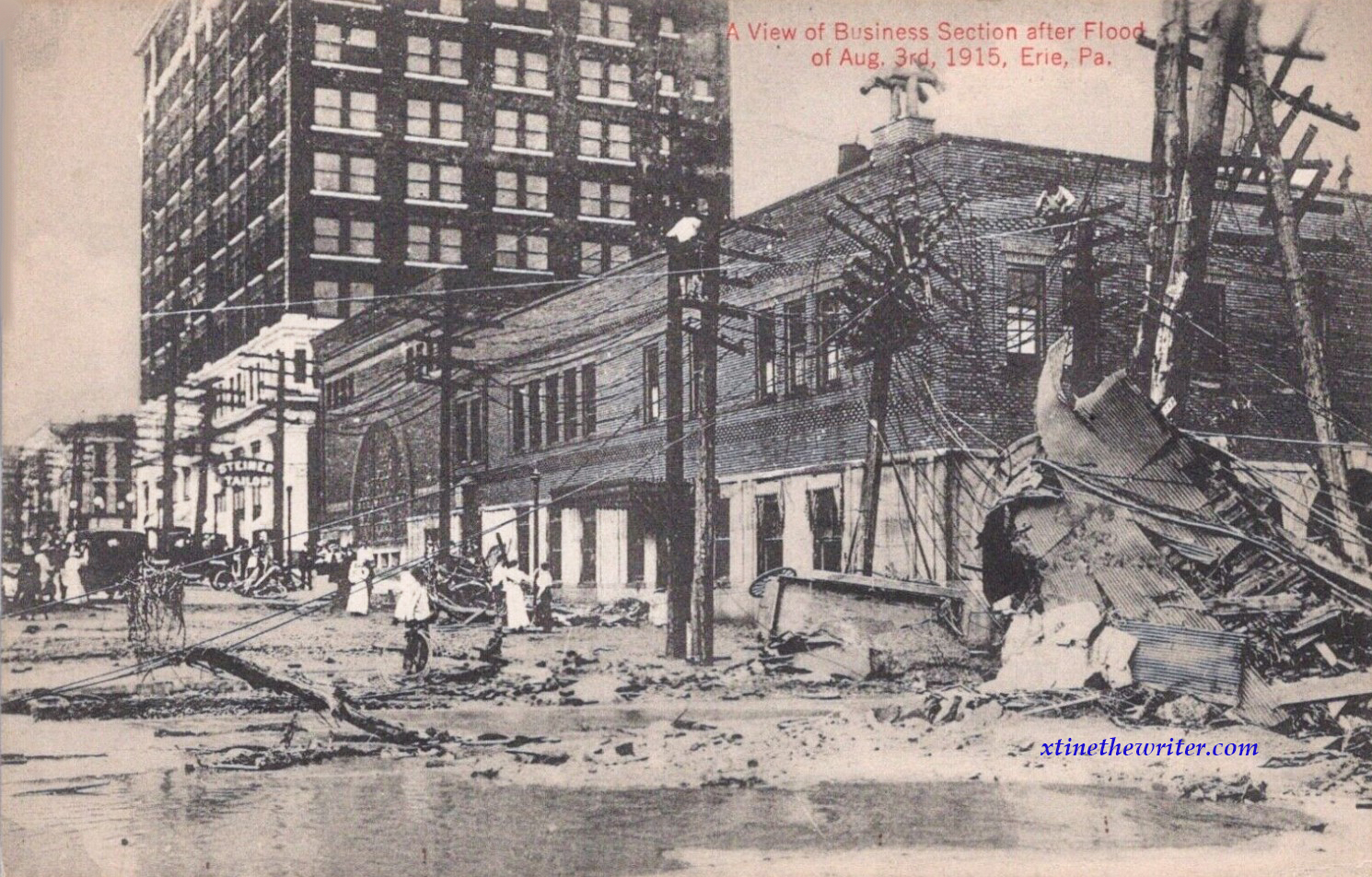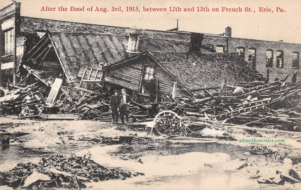 The oversized banner headline of the Aug. 4, 1915 Erie Daily Times Flood Extra stated, “21 bodies recovered; believed 30 still missing in disaster.” Other headlines said, “Fifty low estimate, says coroner; two more bodies are identified at morgue…City suffers greatest loss in its history…Fund for flood sufferers open.”