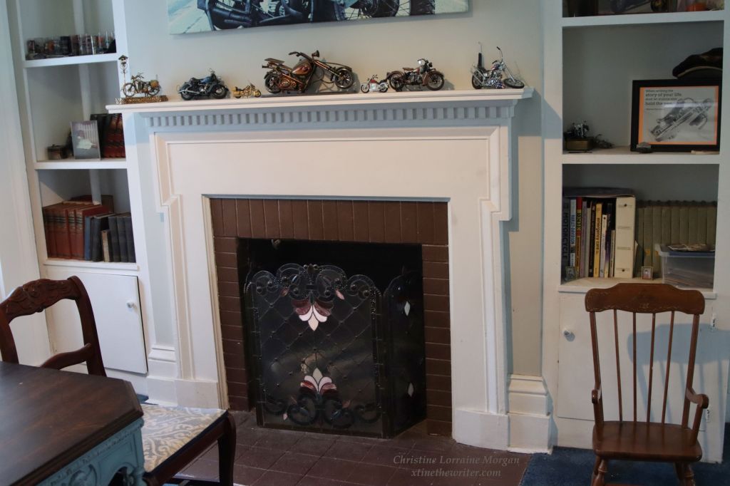 Beautiful fireplace – the original woodwork and molding throughout the Crowley house carries the same design.