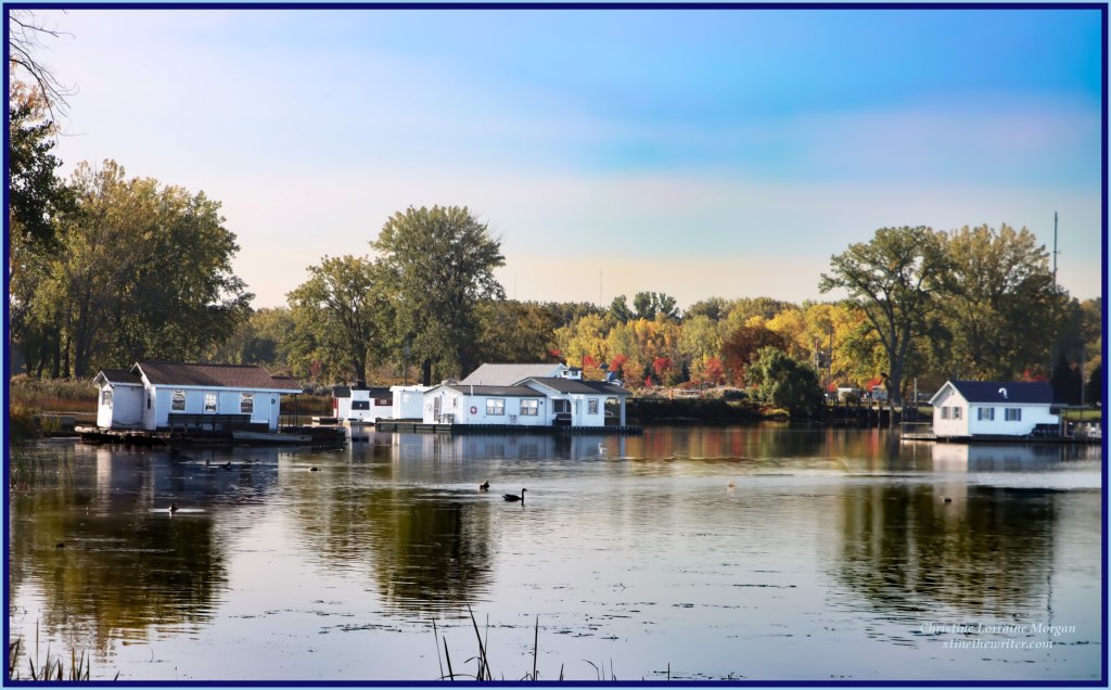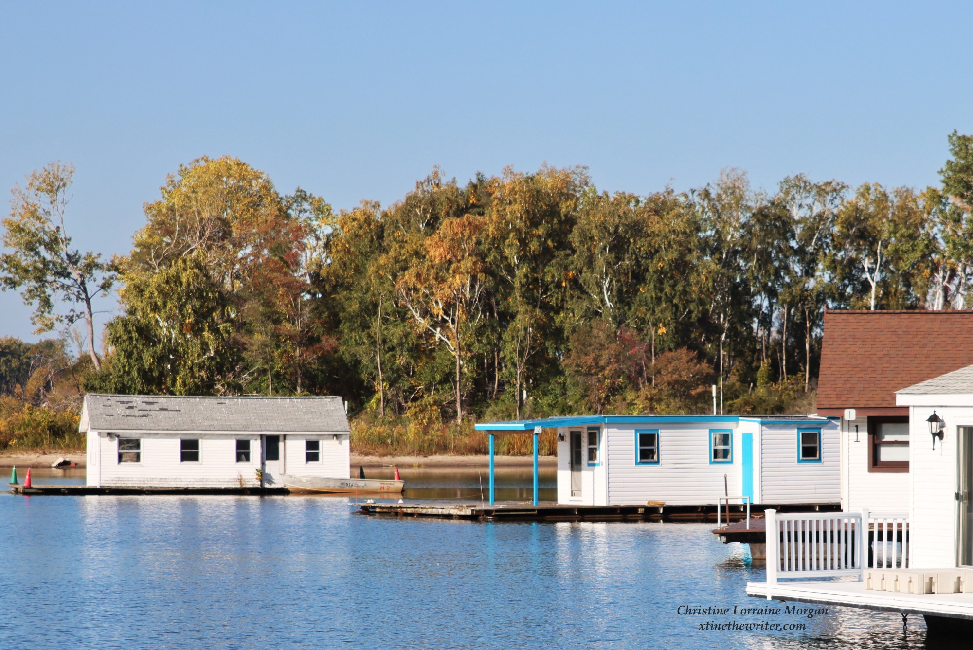 Autumn trees begin to dot the scenery around the Houseboats on Horseshoe Pond.