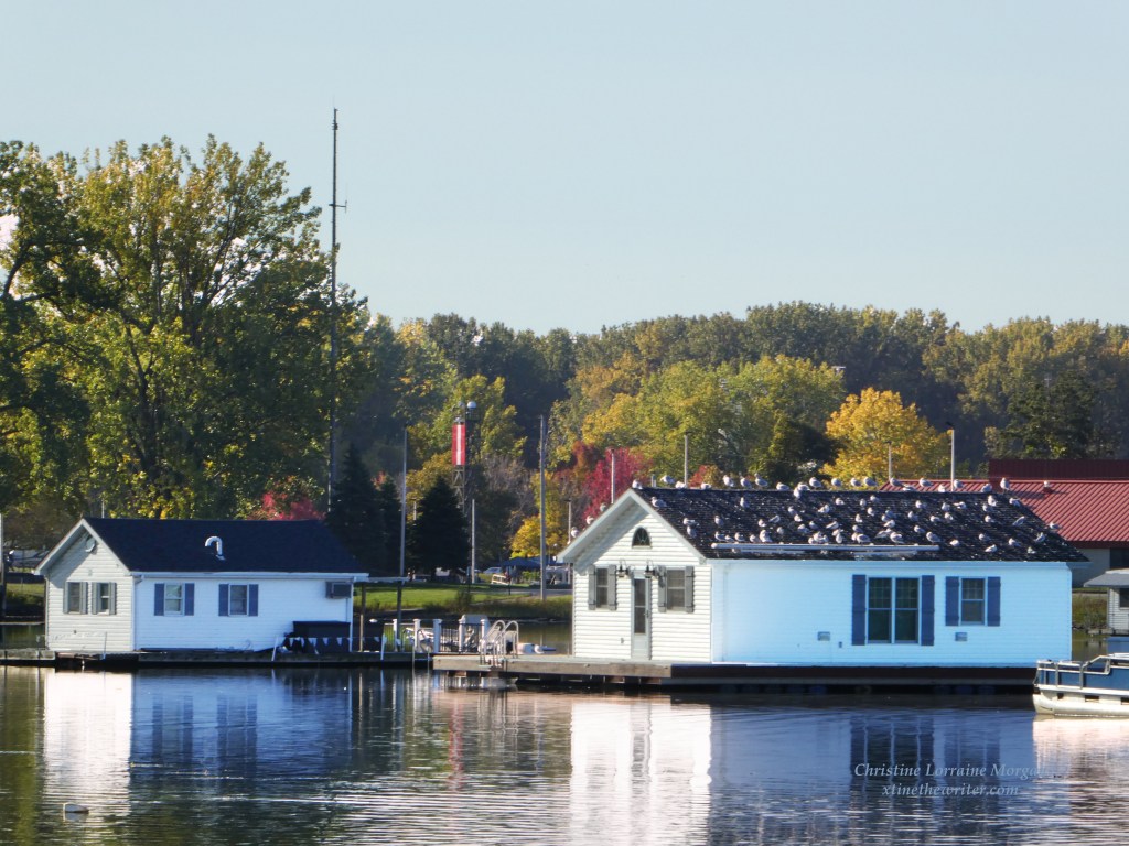 The lake gulls appear to be enjoying the whole houseboat vibe on this brilliant autumn day.