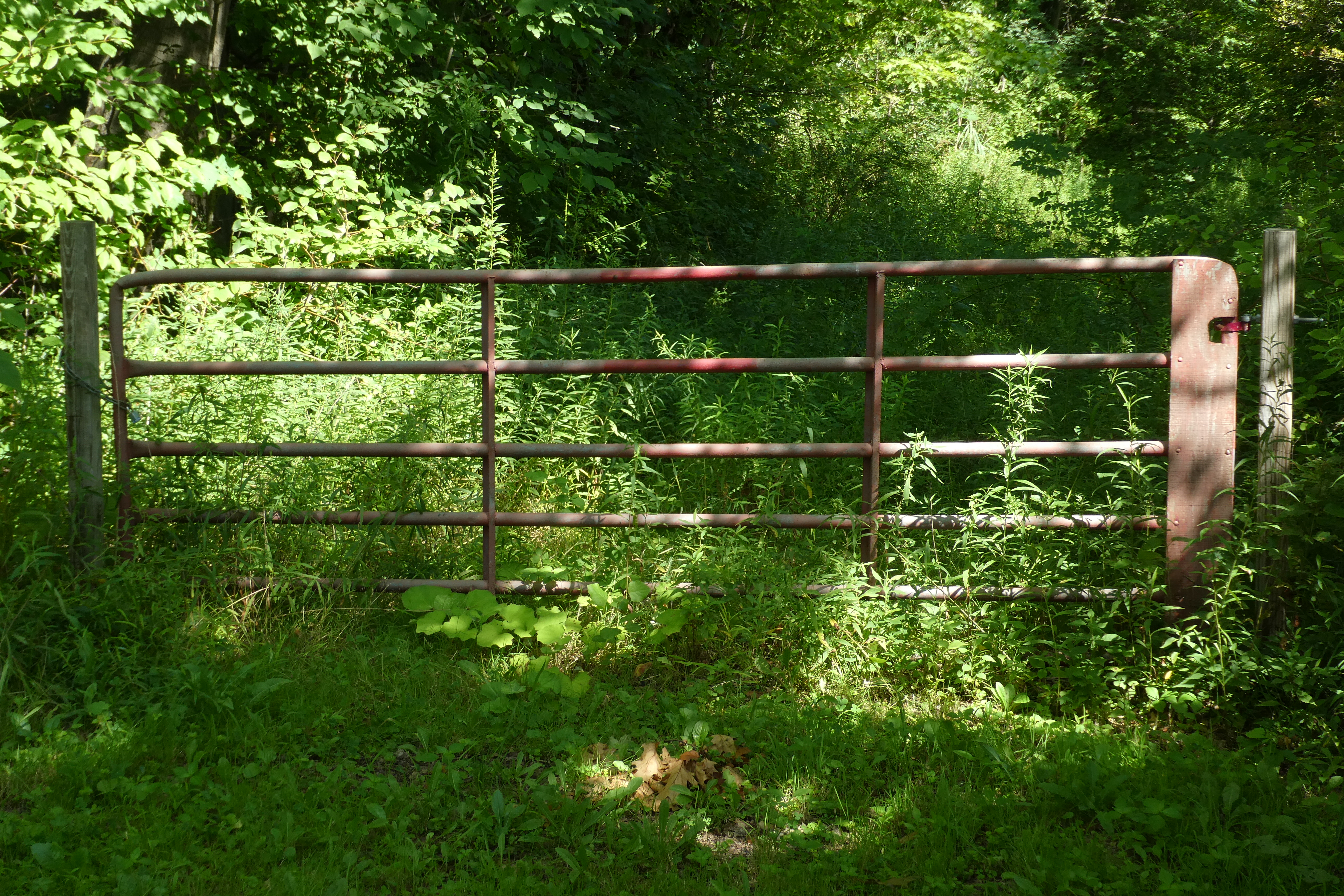 This gate was what we found when searching for the Law Road covered bridge. Pretty sure the bridge site is located somewhere behind it.