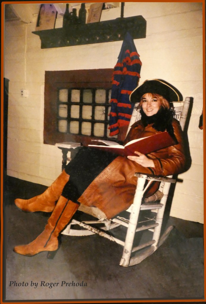 Author Christine Lorraine Morgan smiles while conducting research on General Anthony Wayne inside of the Wayne Blockhouse in Erie, PA