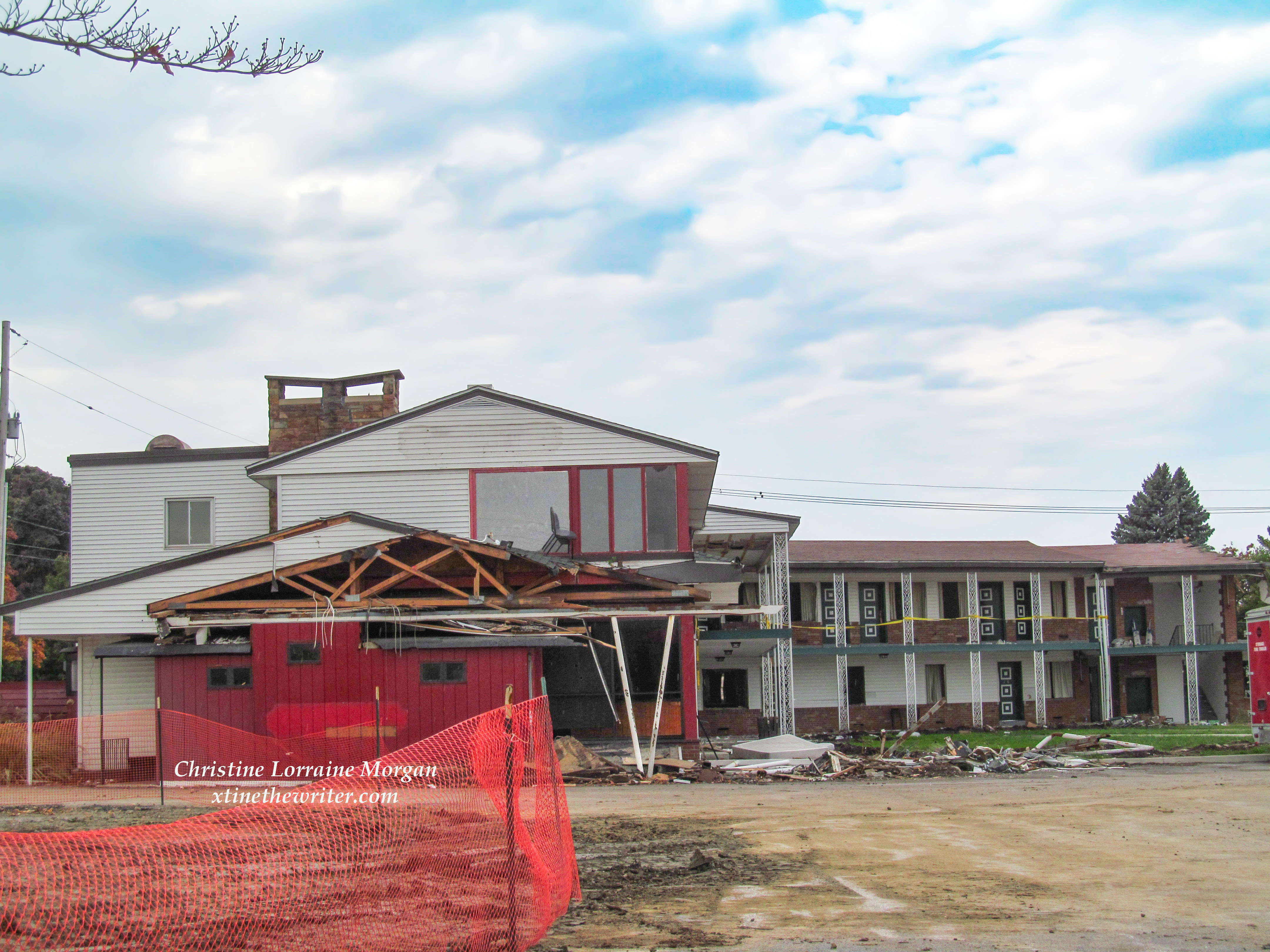November 2016 the demolition of the El-Patio Motel is underway. The caboose-shaped red addition was the entrance to the lounge named Choo Choo’s.