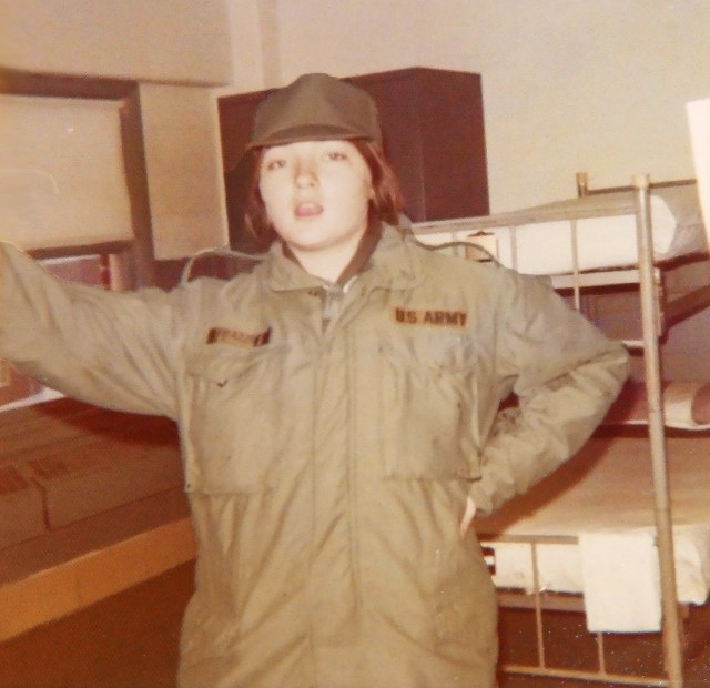 Christine Lorraine Morgan poses for her closeup during Bivouac in February 1975 at Fort Dix, NJ.