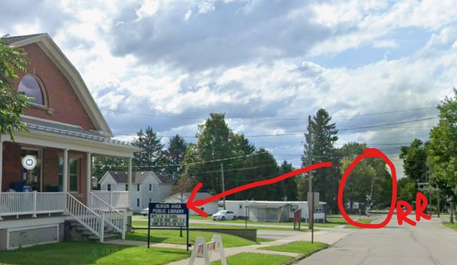 The train tracks in Albion, which were built along the former Erie Extension Canal Route, pass the Library/Rest House about half a city block away. The googlemaps image included in this post shows the building’s proximity to the railroad tracks.