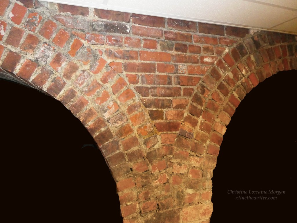 These curved brick arches in the library’s lower level were photographed in 2019.