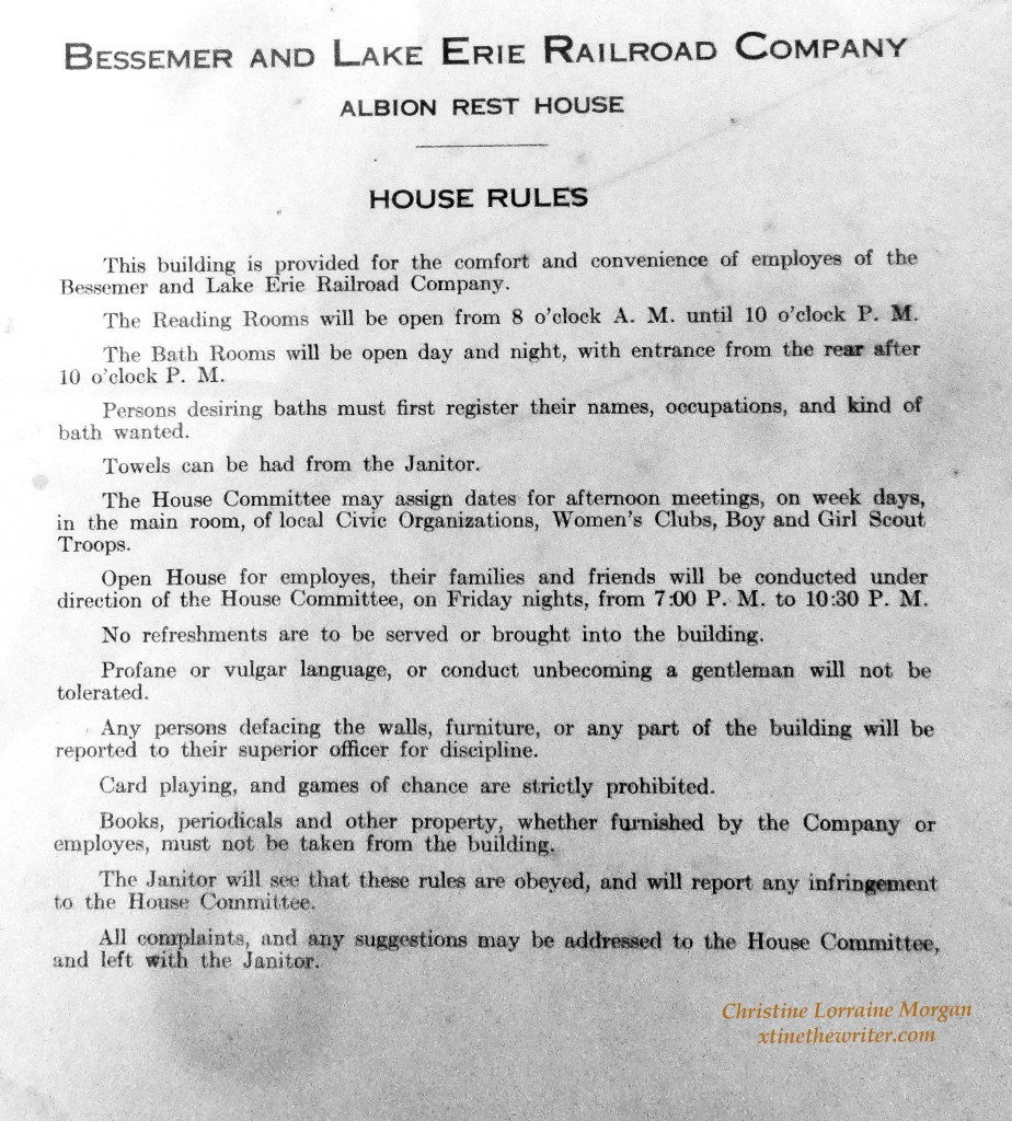 These are the “House Rules” that were posted within the Albion Rest House