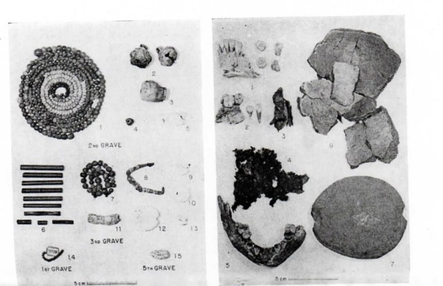 Scientists were able to assign the mid 1600s date to these graves because various date-able relics which came from Europe were also removed from the dig site, including axes, bracelets, knife blades, and rings of iron. European brass and copper pieces, and thousands of trade beads were also recovered.