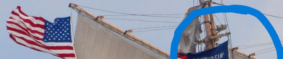 Image capture from August 2025 shows the flags flying aboard the “Lettie G Howard” during the tall ship festival.