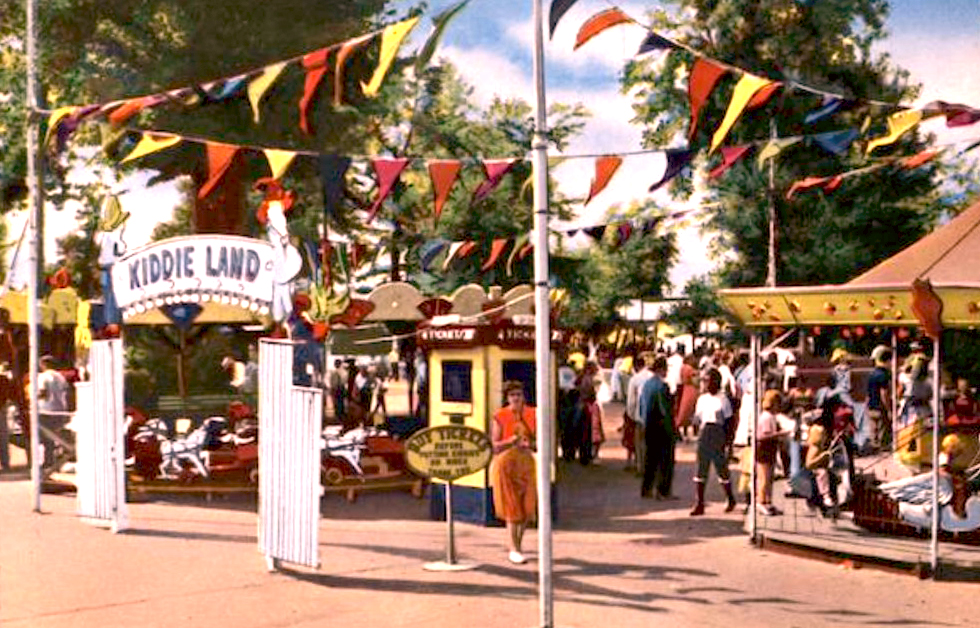 Kiddie Land with its own entrance and rides. And wooden ticket booth.