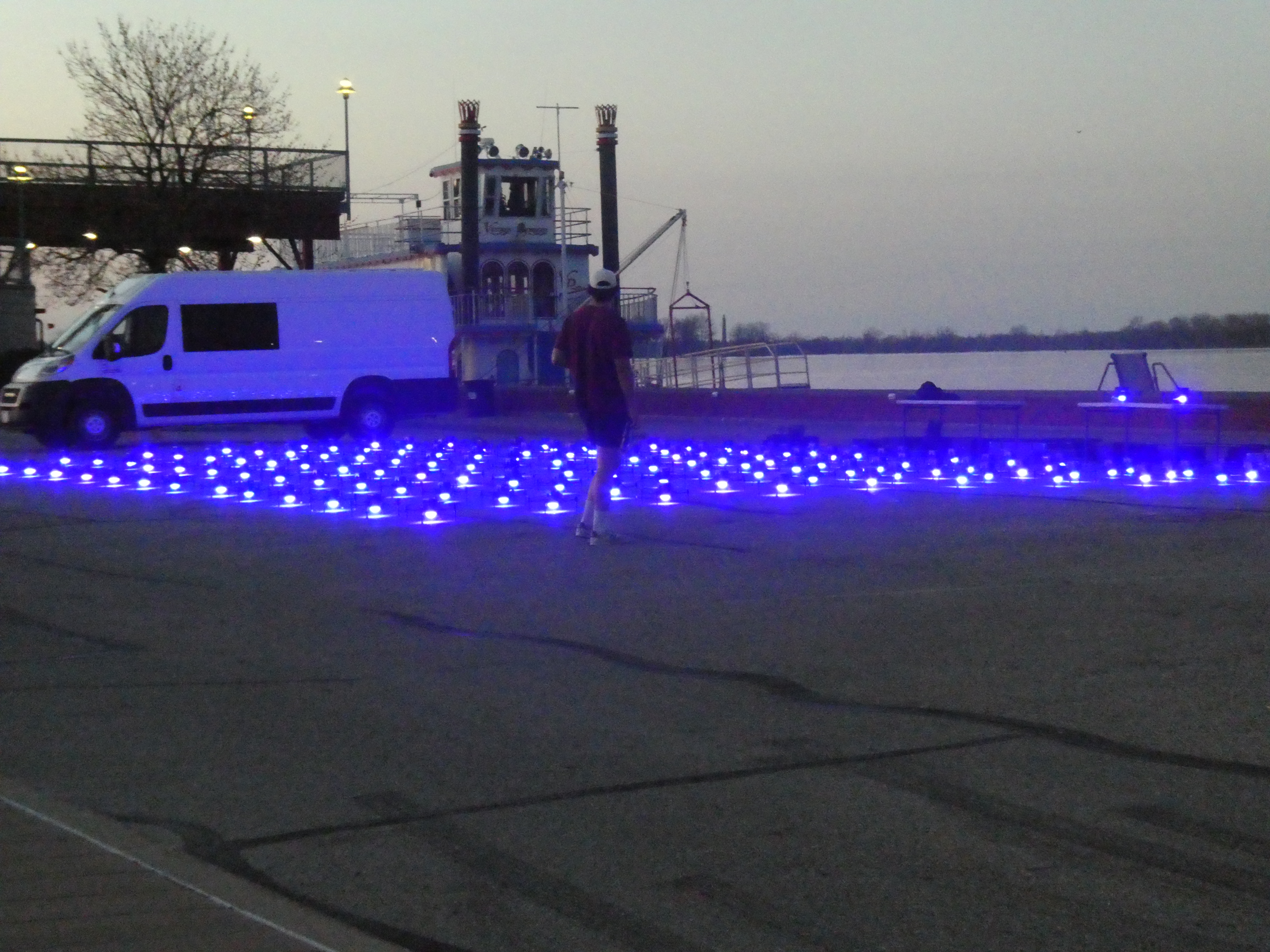 A drone show by Open Sky Productions was featured over Presque Isle Bay on a calm spring night, under the stars and crescent moon. It appears to have been sponsored by Kwik Fill, based on the displays.